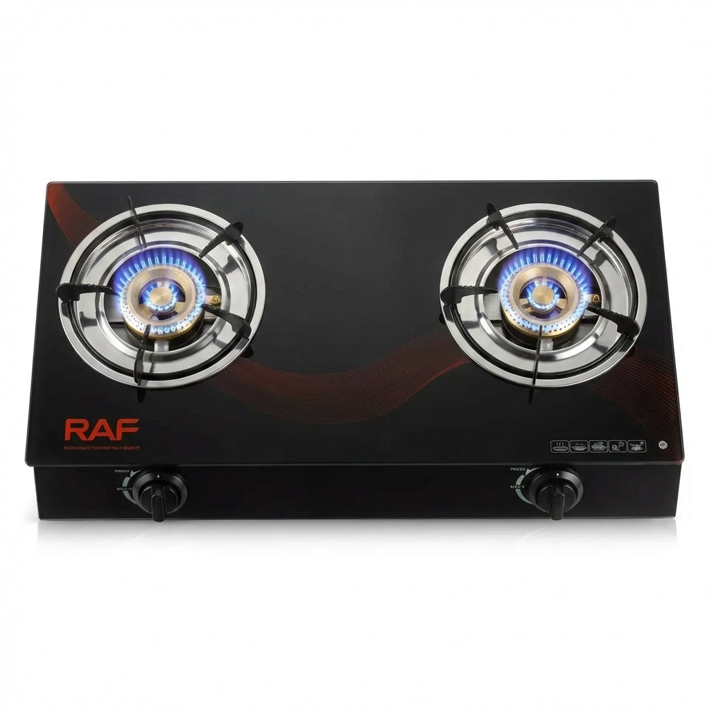 Aragaz de Masă Dublu R.8051, Sticlă Călită Neagră, Aprindere Electronică, 2 Arzătoare