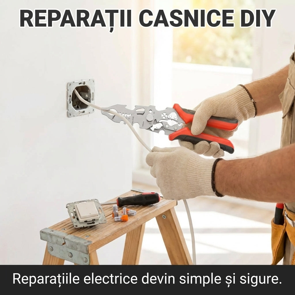 Înlocuiește o întreagă trusă de scule cu un singur dispozitiv inteligent. Fie că ești electrician profesionist sau pasionat de bricolaj, acest clește multifuncțional este soluția completă pentru prelucrarea firelor. Fabricat din oțel inoxidabil dur, acesta taie, dezizolează, separă și sertizează cablurile cu precizie milimetrică, fără a deteriora miezul firului.