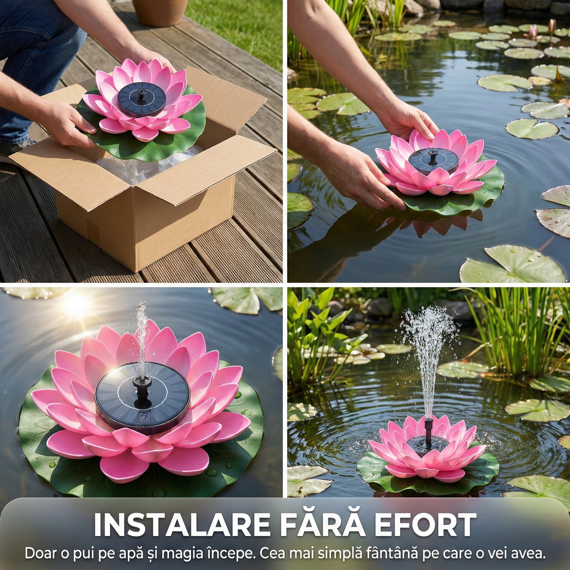 Transformă instantaneu aspectul iazului tău într-un colț de rai zen. Îți dorești un element de decor care să aducă viață și culoare grădinii tale, fără efortul instalării unor sisteme complicate? Această fântână solară arteziană, mascată elegant sub forma unei flori de lotus, este soluția perfectă "plug-and-play". Pur și simplu o așezi pe apă, iar razele soarelui vor activa jetul răcoritor, creând o oază liniștită și atrăgătoare pentru tine și pentru păsările din jur.