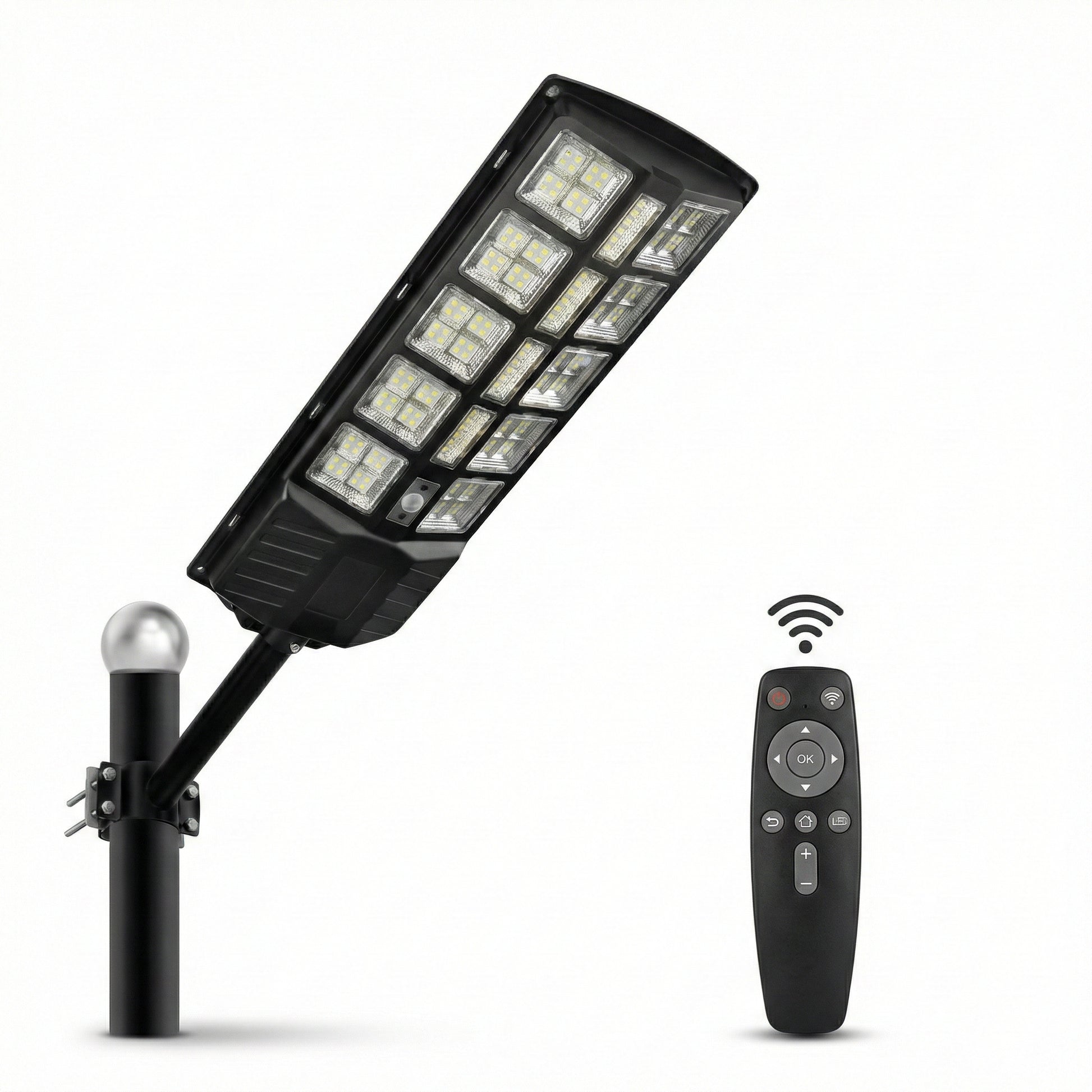 Lampă Stradală Solară LED 300W cu 10 Casete, Senzor de Mișcare și Lumină, Telecomandă, Impermeabilă