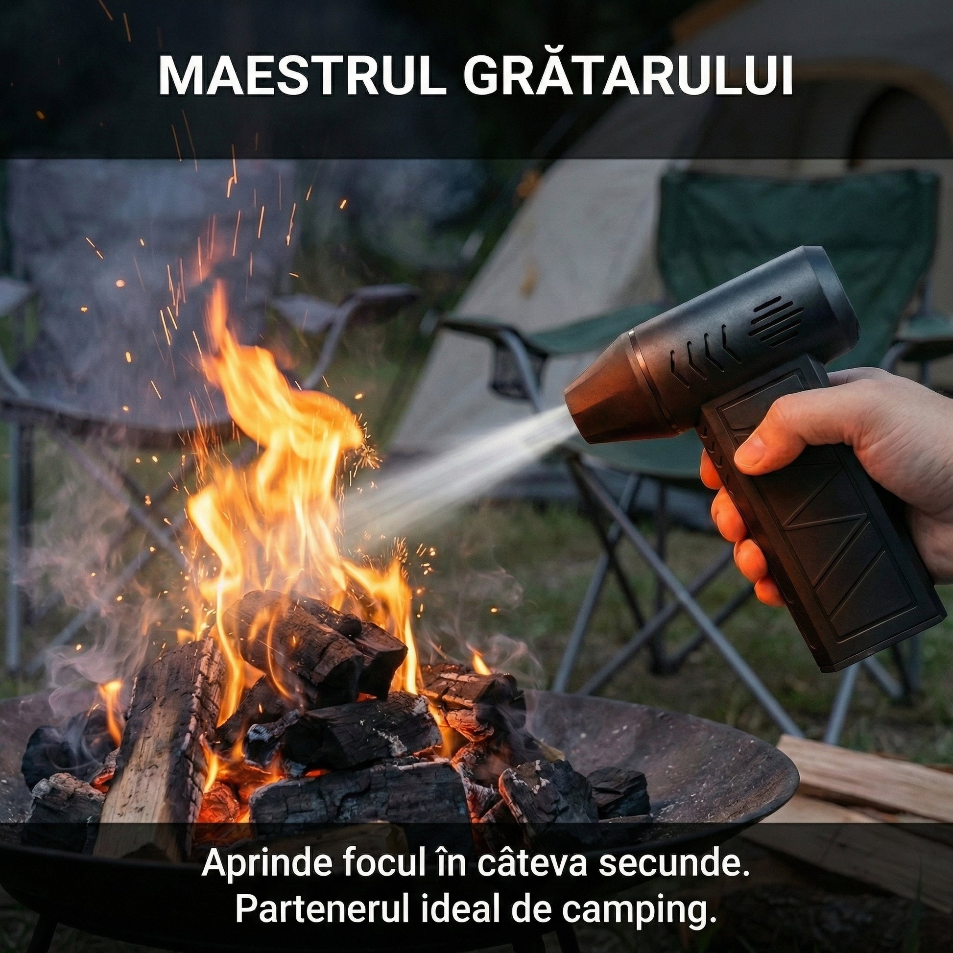 Puterea unei tornade, direct în buzunarul tău. Această suflantă turbo revoluționară redefiniște standardele de curățenie și răcire portabilă. Echipată cu un motor "Brushless" de ultimă generație care atinge viteze amețitoare de 110.000 rotații pe minut, generează un jet de aer capabil să atingă 42 metri/secundă. Este instrumentul suprem pentru curățarea prafului din calculatoare, uscarea rapidă a mașinii, aprinderea focului la grătar sau răcorire în zilele toride.