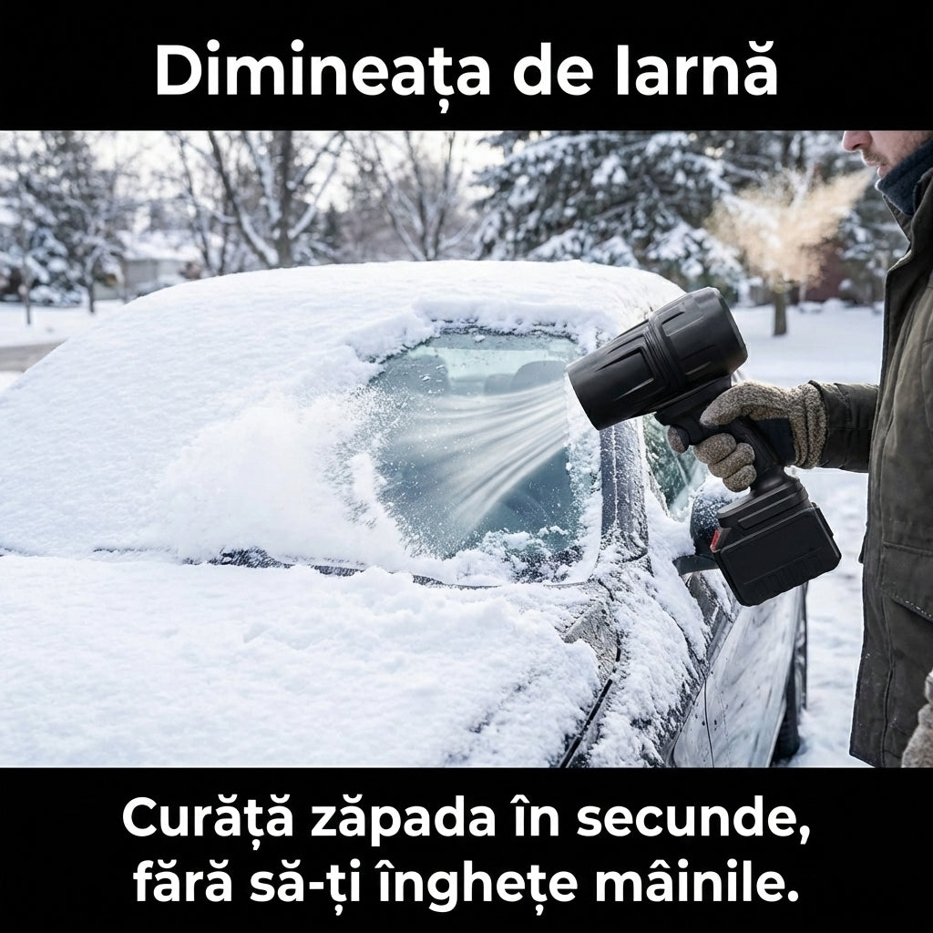 Suflantă Turbo "Jet Fan" Portabilă - Putere 550g, Uscare Auto & Curățare Zăpadă + 2 Acumulatori 48v
