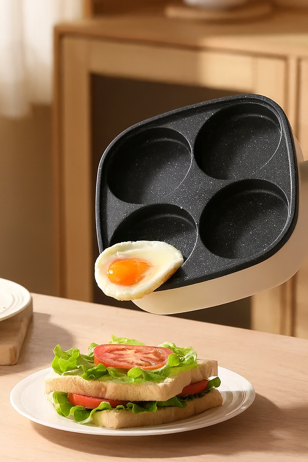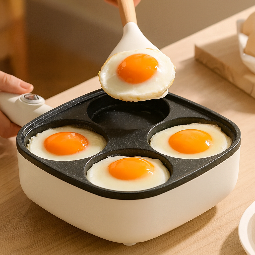 Gătești 4 ouă simultan – perfect pentru un mic dejun rapid și uniform.