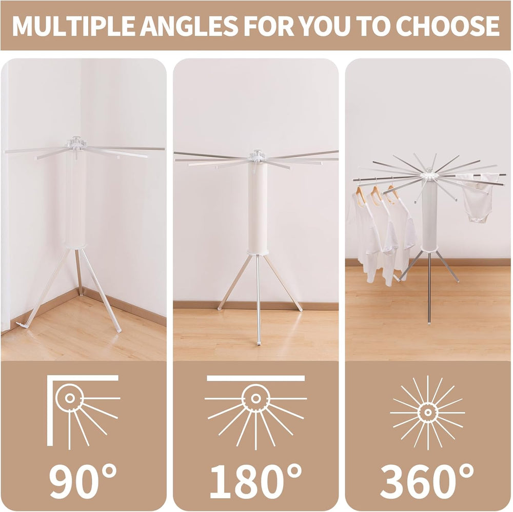 ✔️ 16 brațe rotative – uscare uniformă a hainelor.